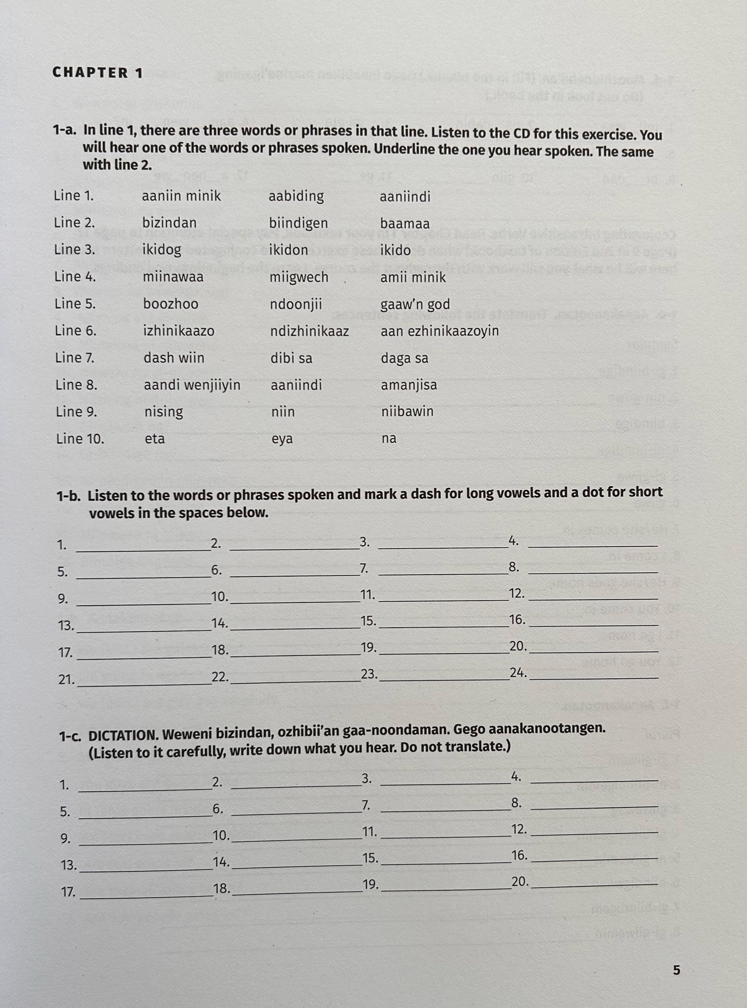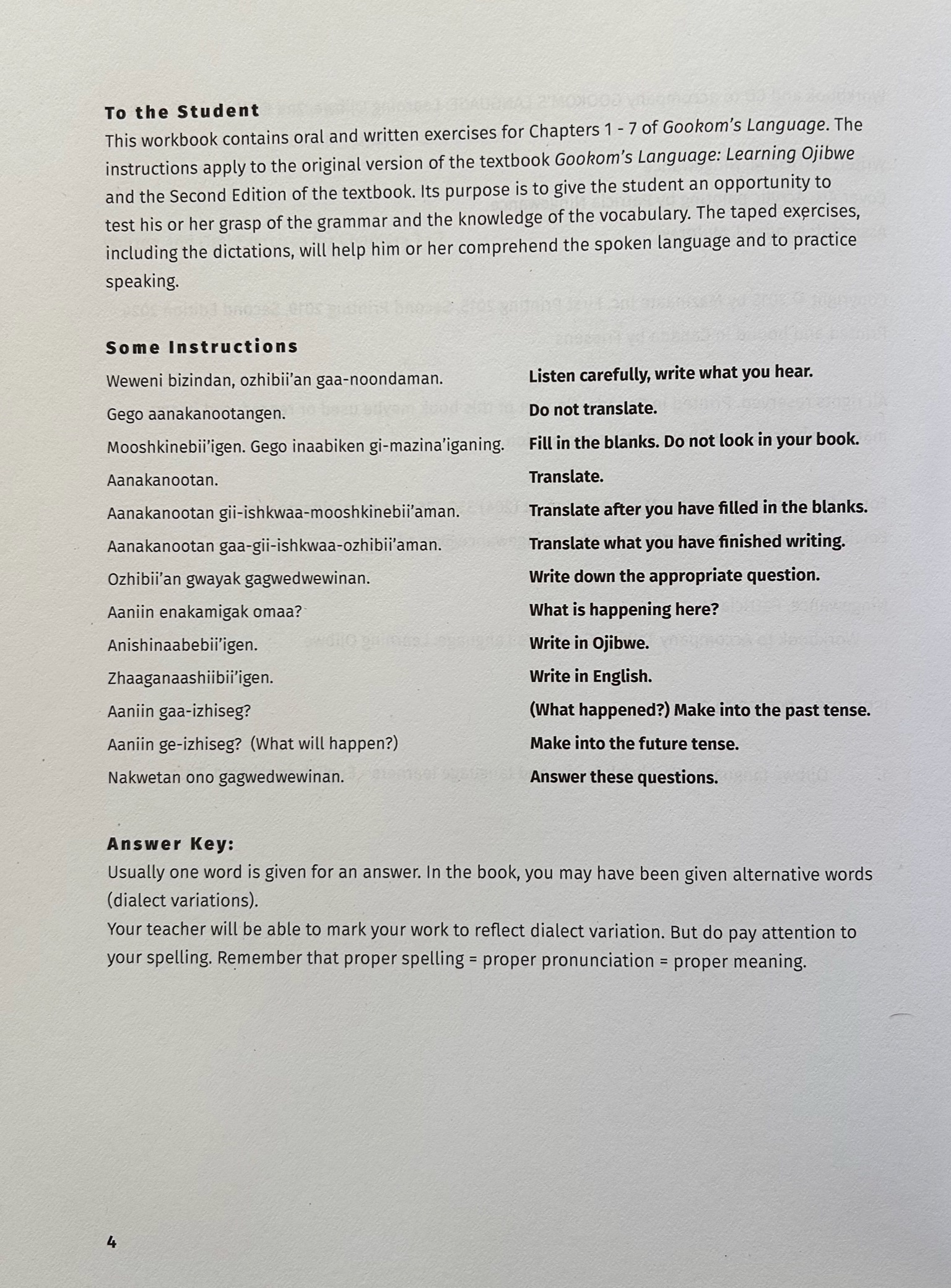 Workbook includes exercises to go along with the first 7 chapters of Gookom’s Language: Learning Ojibwe (2nd ed. textbook). Listen to the CD to translate, hear the language and get help with pronunciation. Also available in an e-book with audio link which can be sent as an email, please contact for more info.